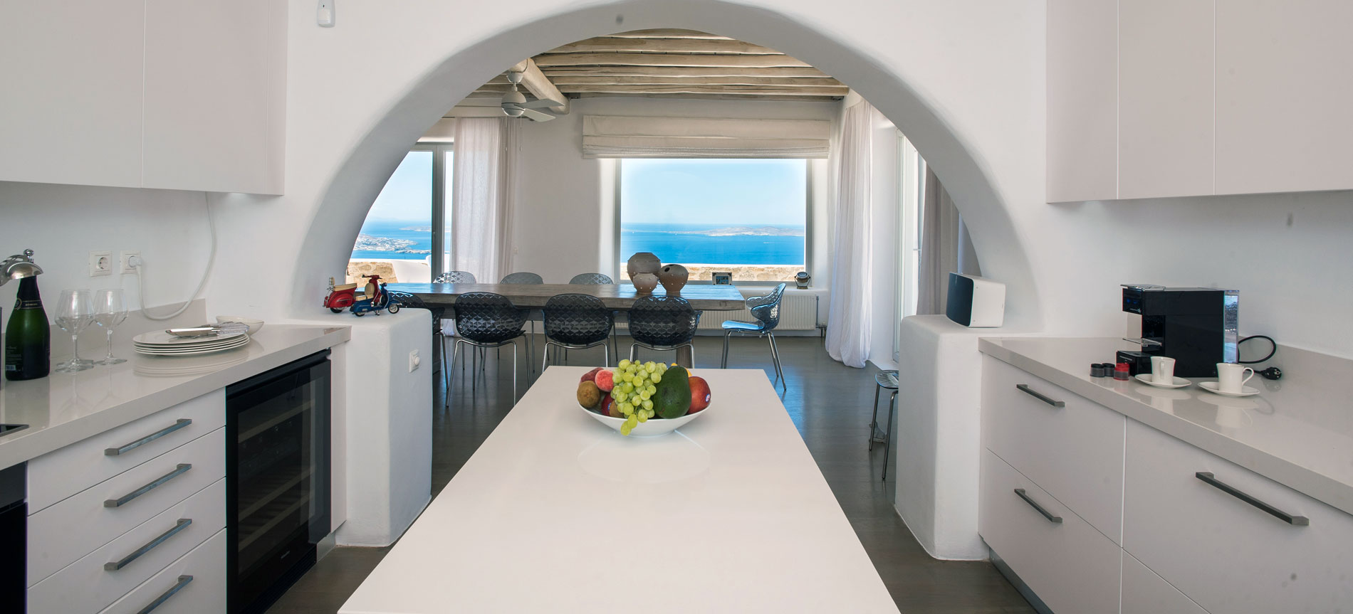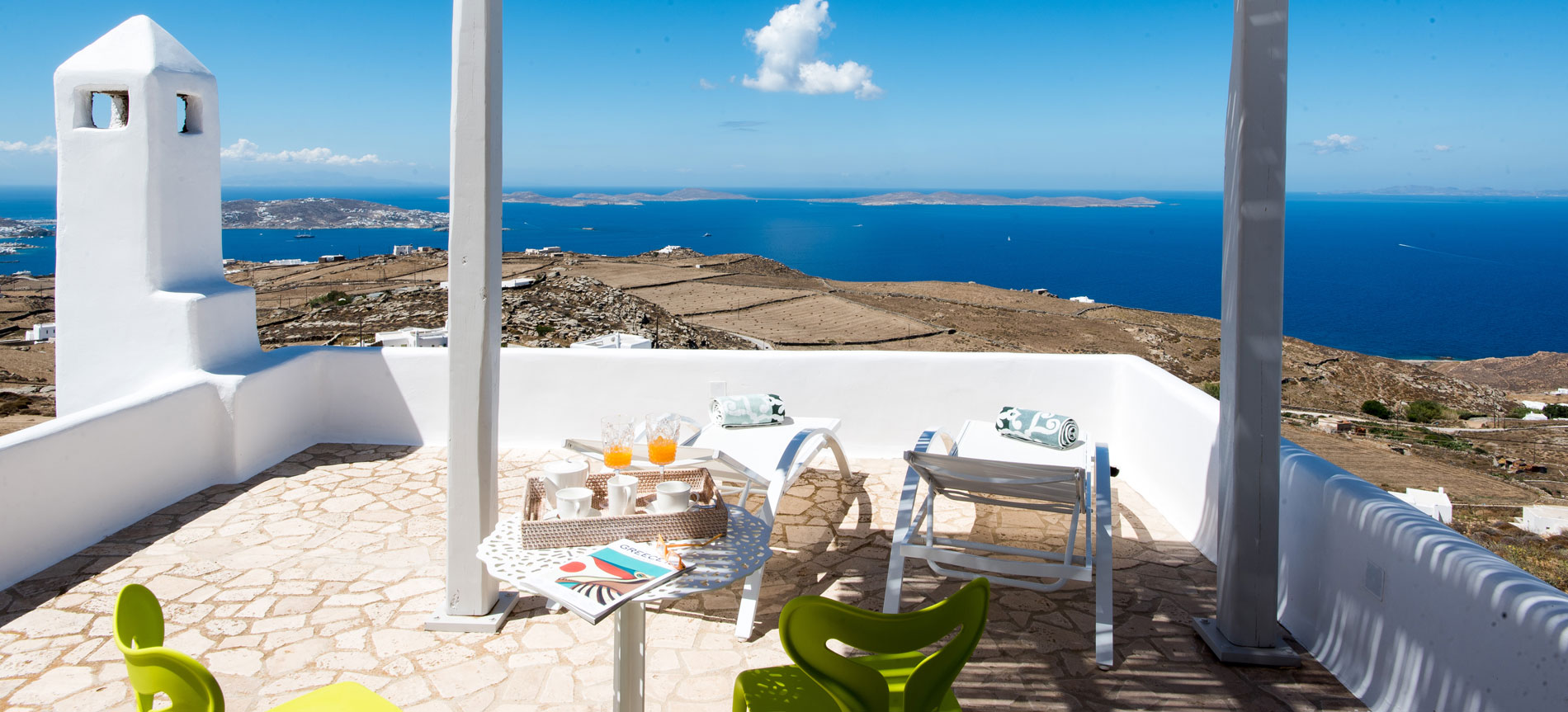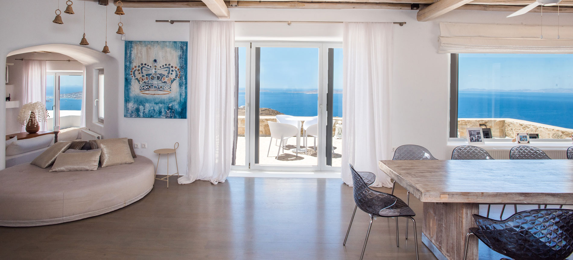 Distances: Mykonos town: 7 km; Port & yacht marina, 5 minutes drive; Airport: 10 km