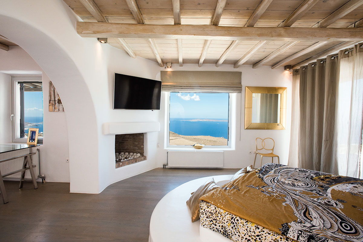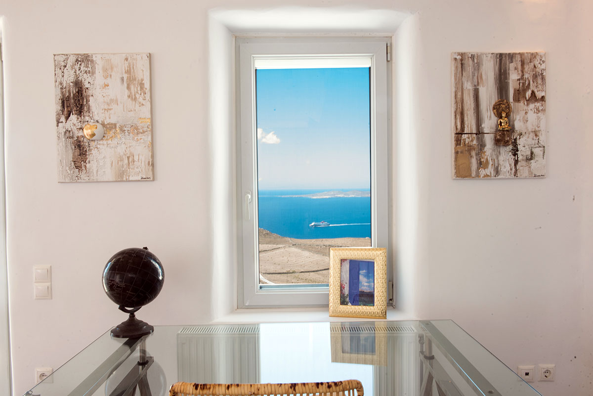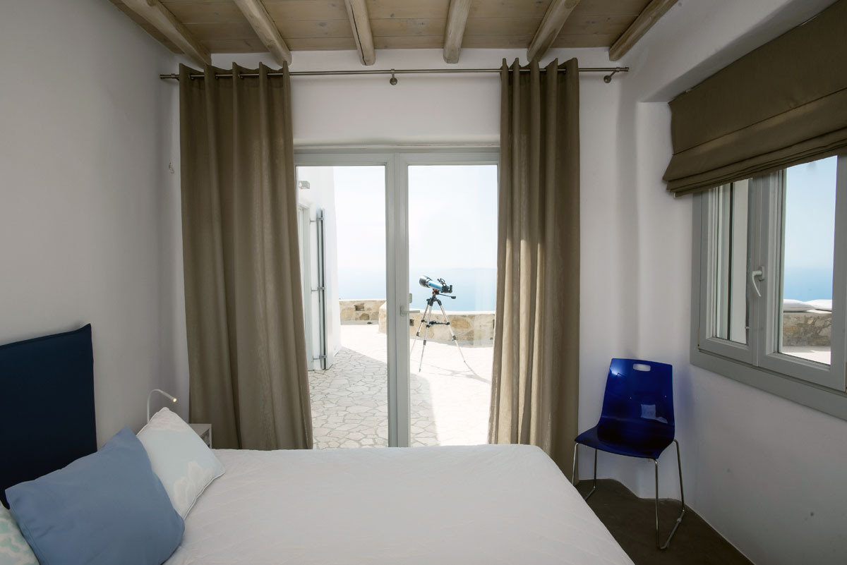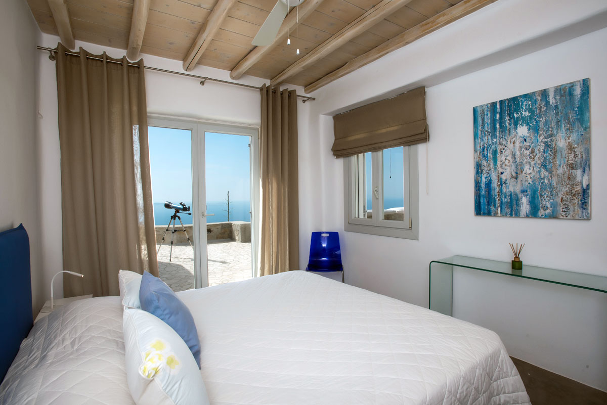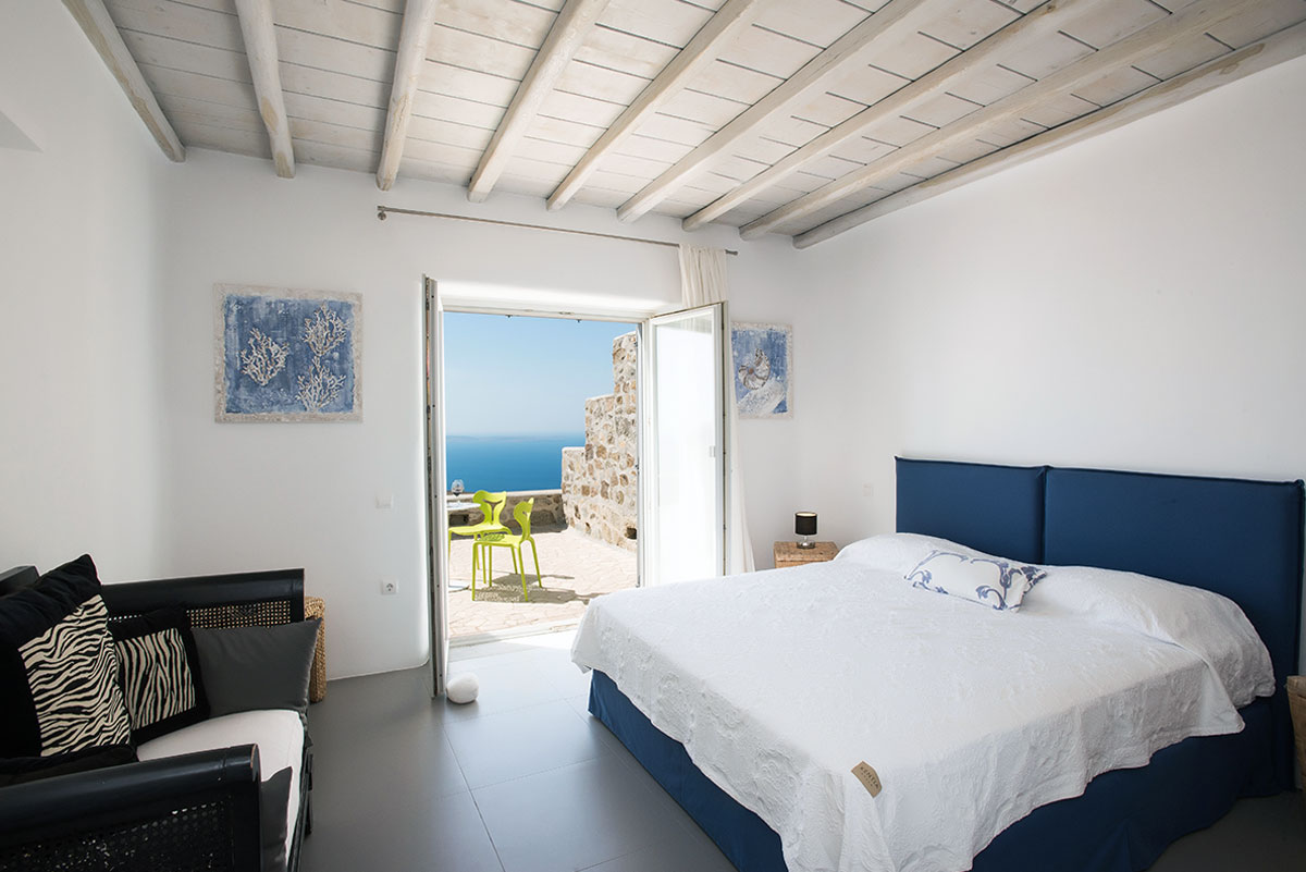 • One Master bedroom with fireplace, sitting area, office and en-suite bathroom with bathtub and shower; two terraces and one pergola with magnificent view to the sea, sunset, Chora and light house