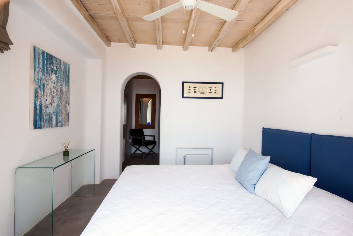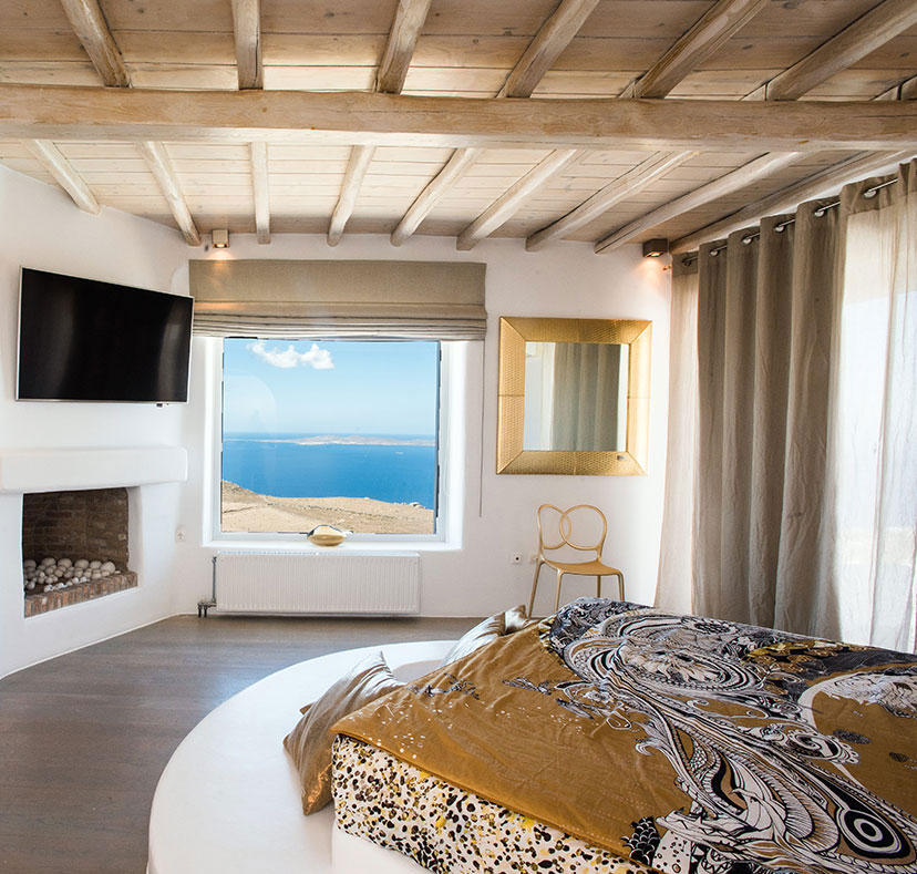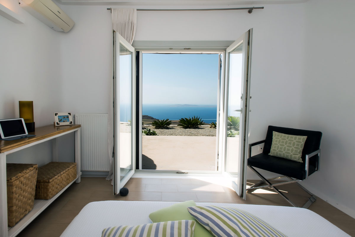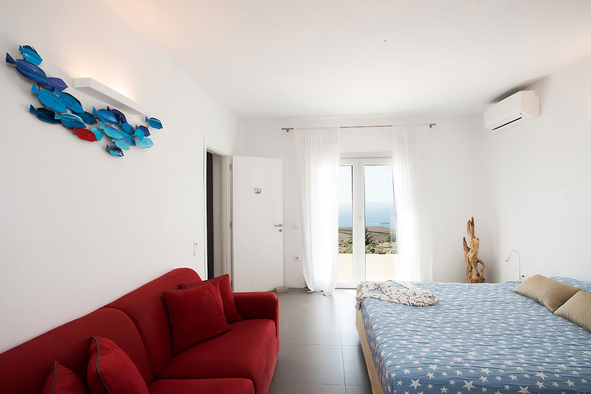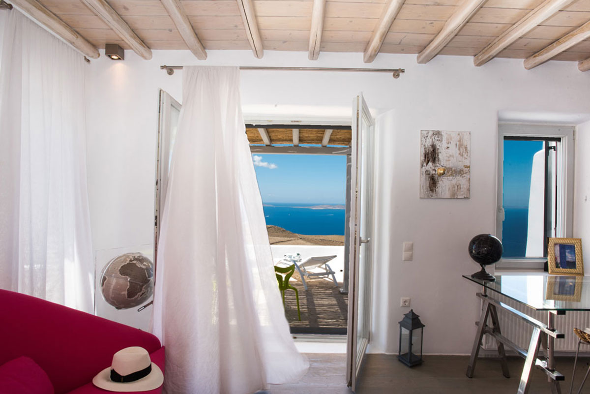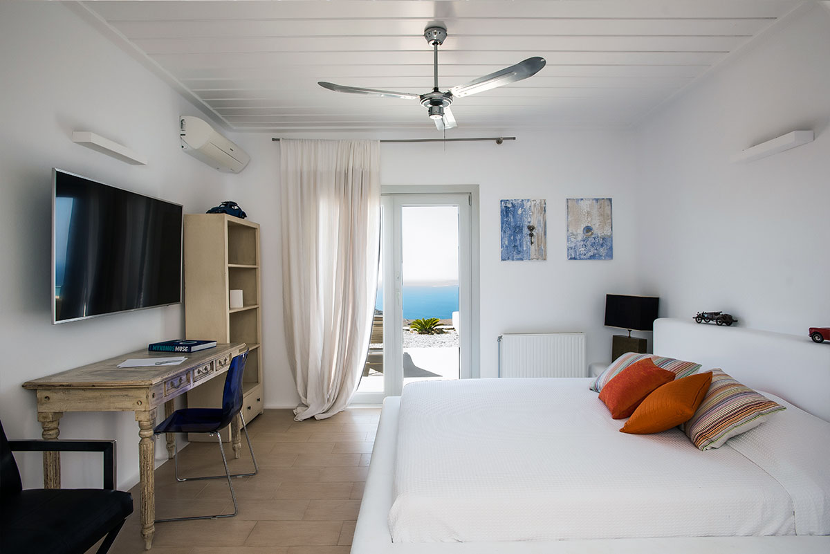 • One Master bedroom with fireplace, sitting area, office and en-suite bathroom with bathtub and shower; two terraces and one pergola with magnificent view to the sea, sunset, Chora and light house