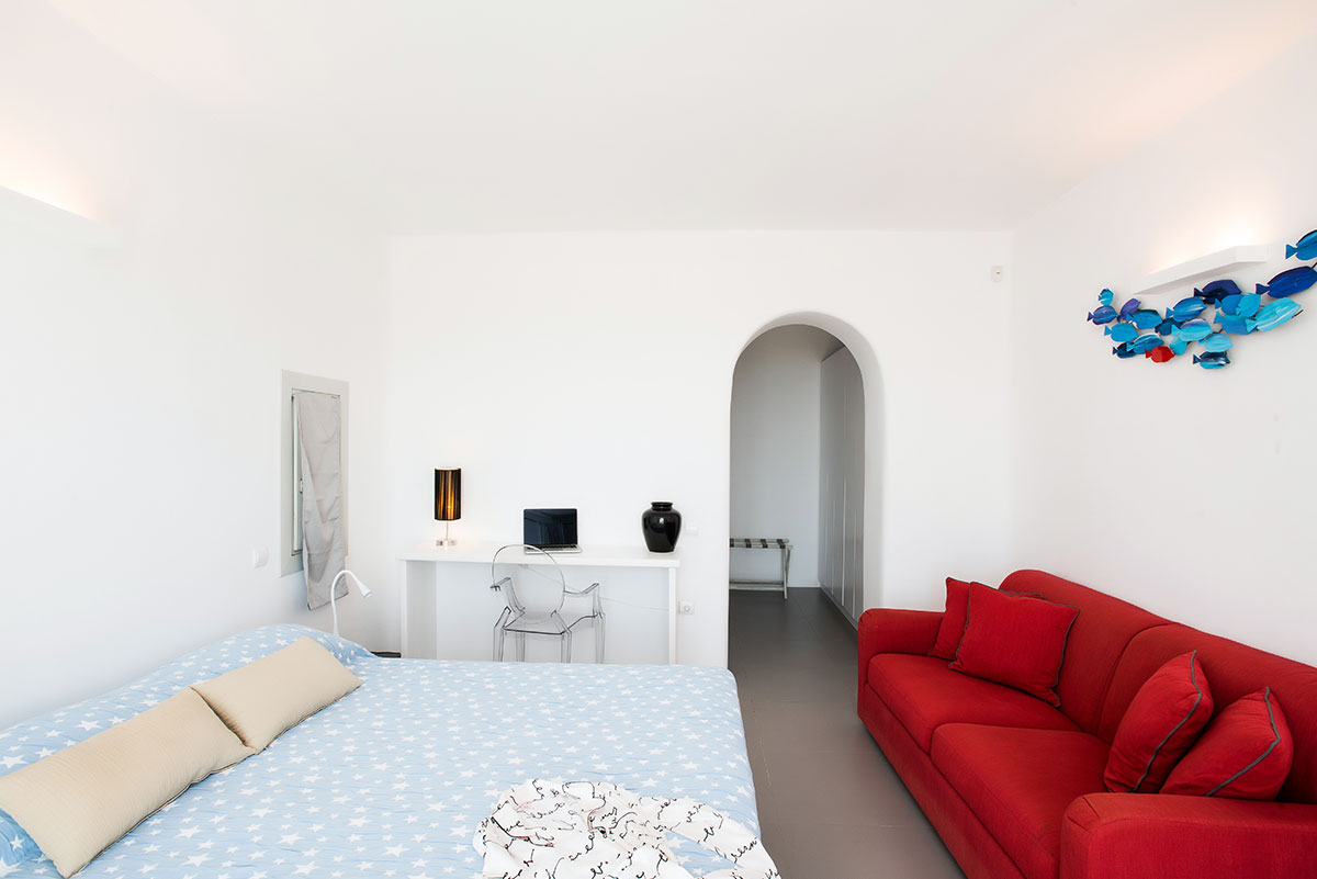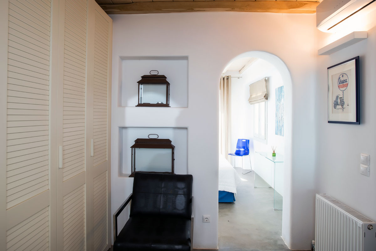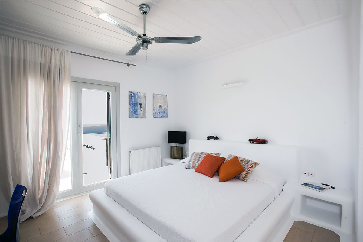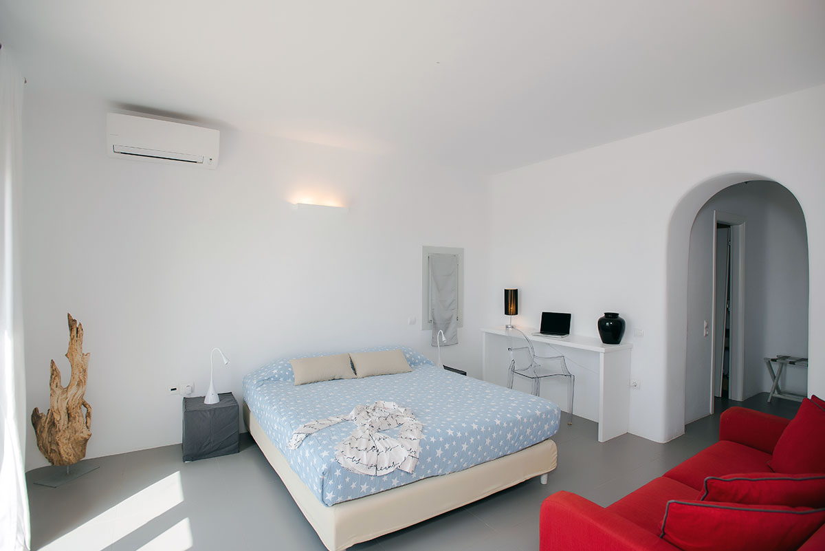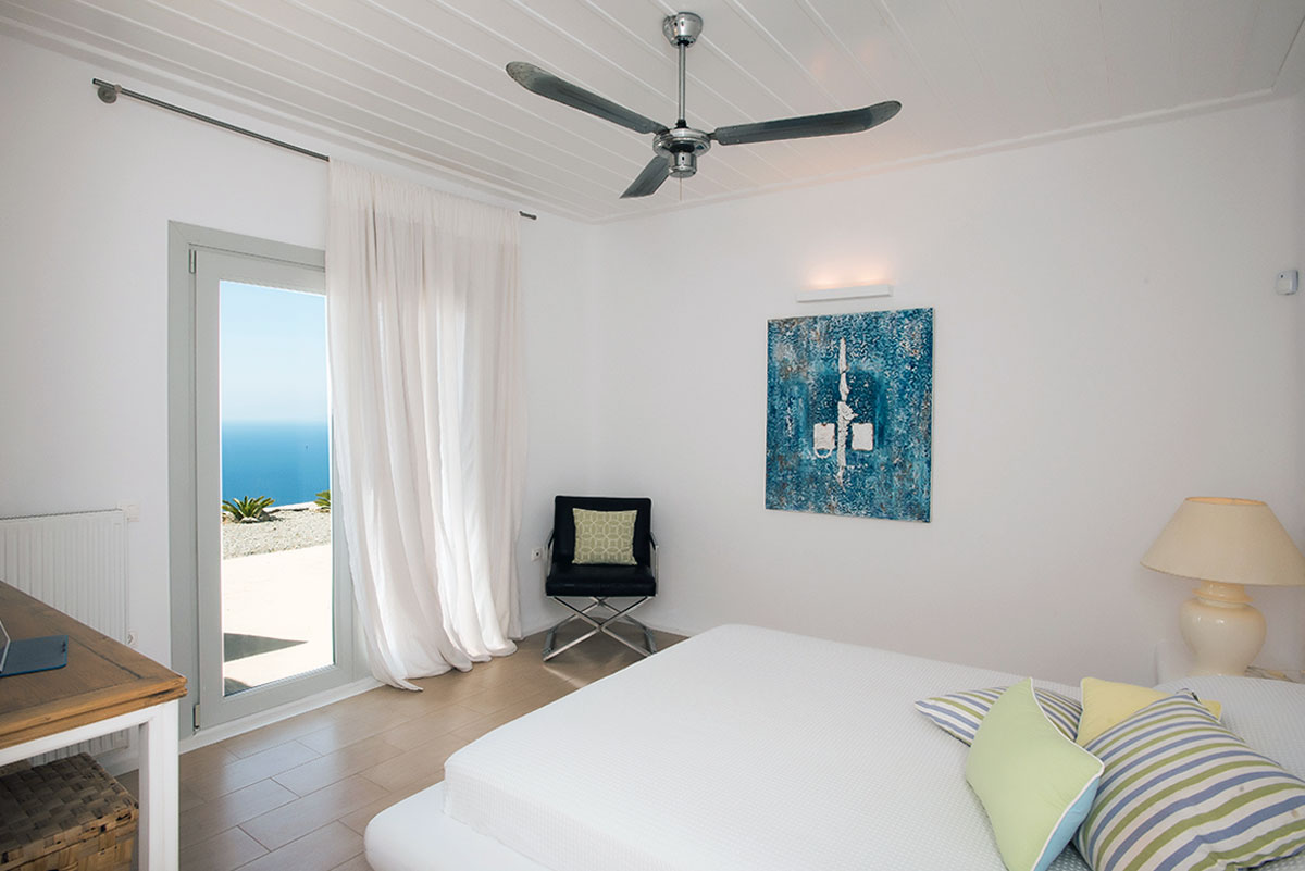 • One Master bedroom with fireplace, sitting area, office and en-suite bathroom with bathtub and shower; two terraces and one pergola with magnificent view to the sea, sunset, Chora and light house