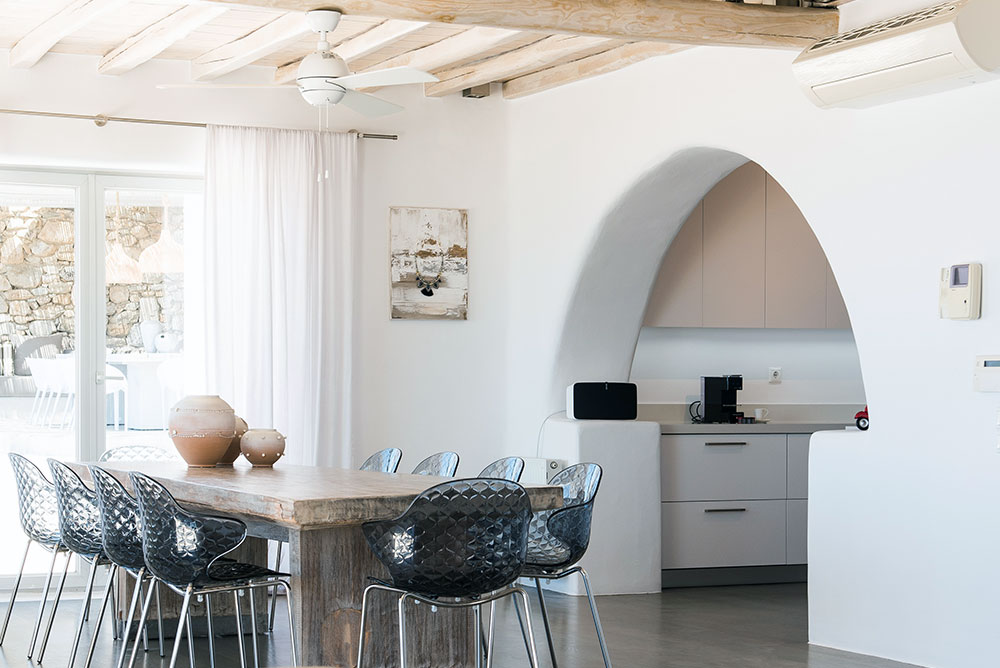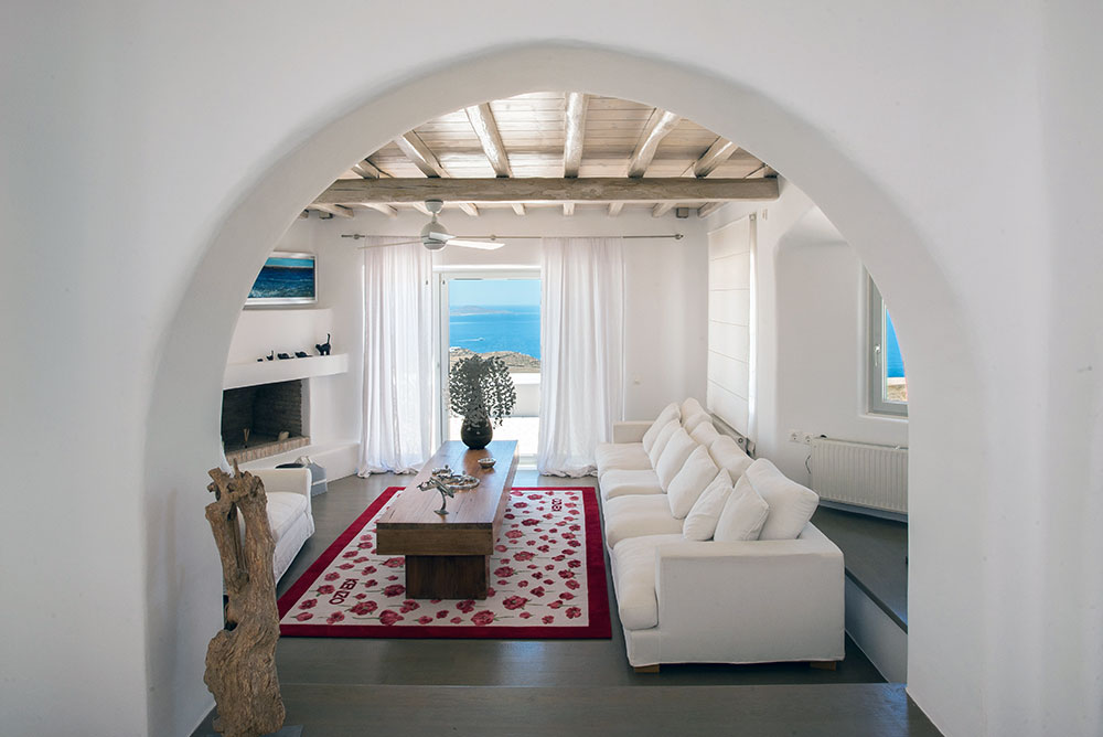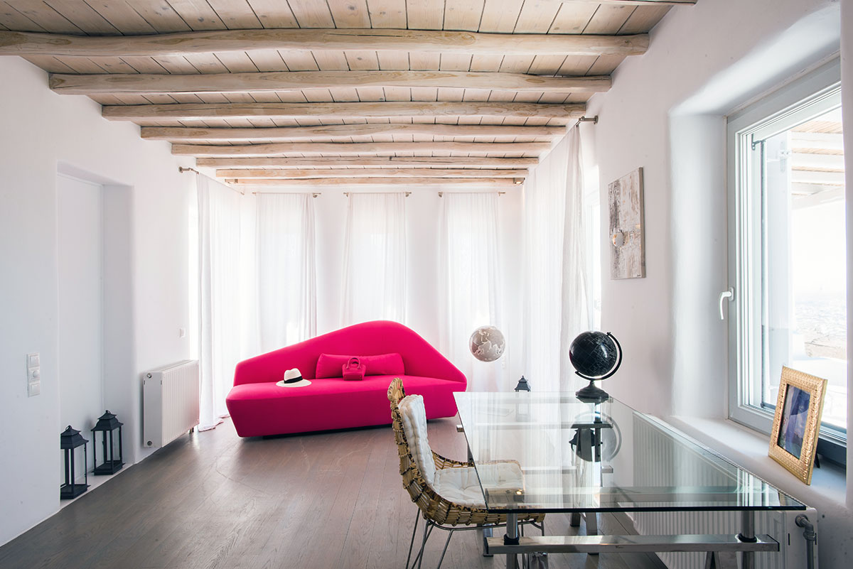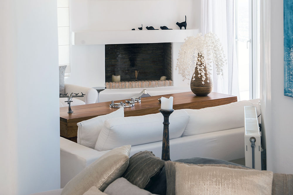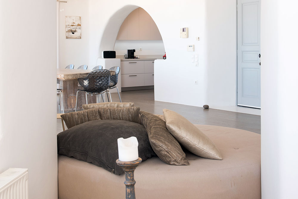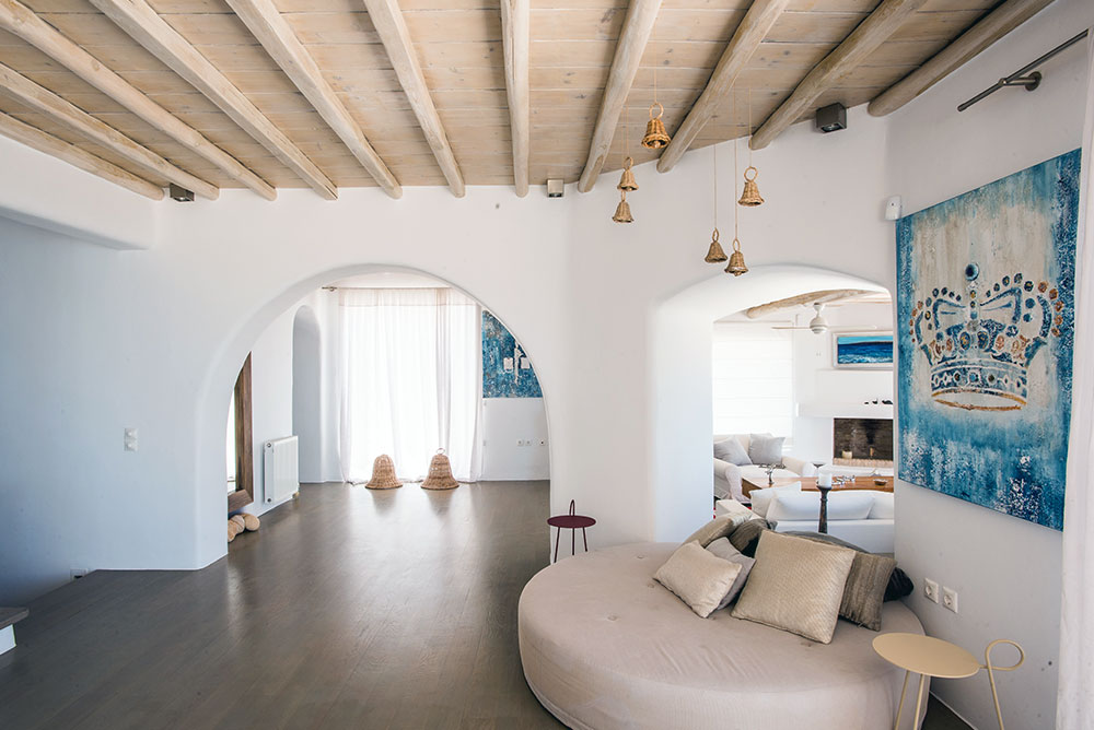 The architecture at Villa DeLucien has harmoniously combined the elegance and fine traditional aesthetics of modern interior with the wild beauty of the Cycladic nature found right outside.