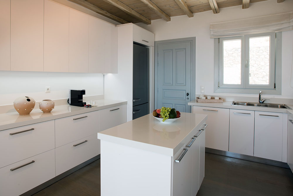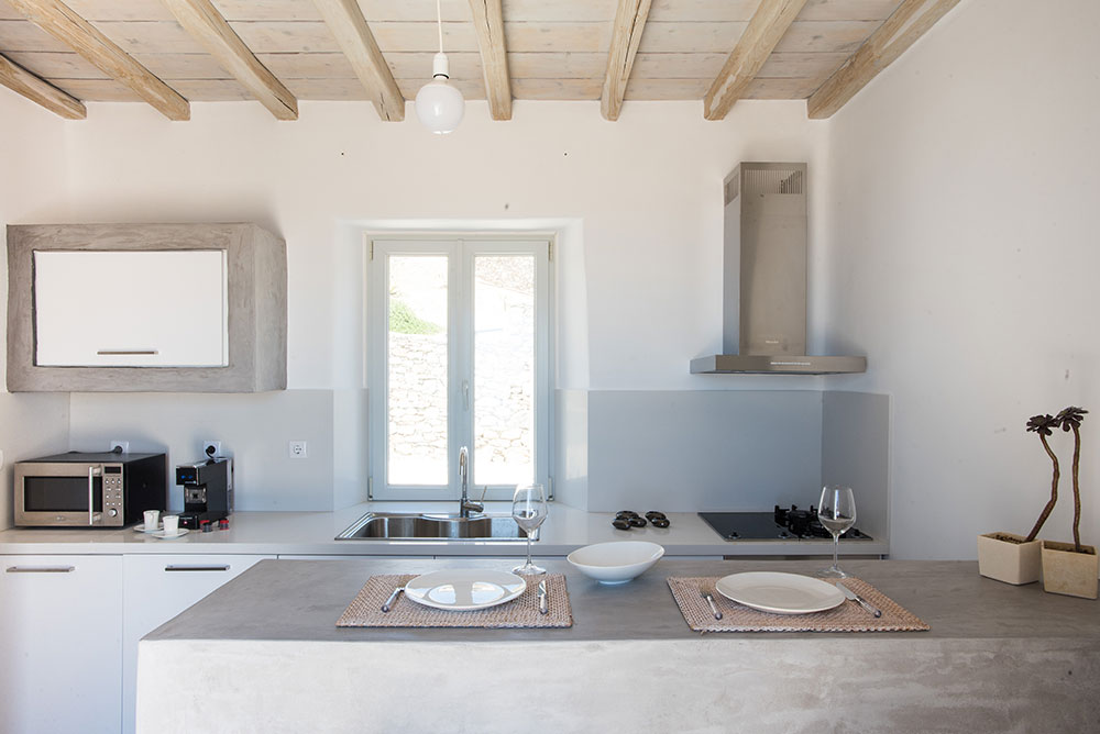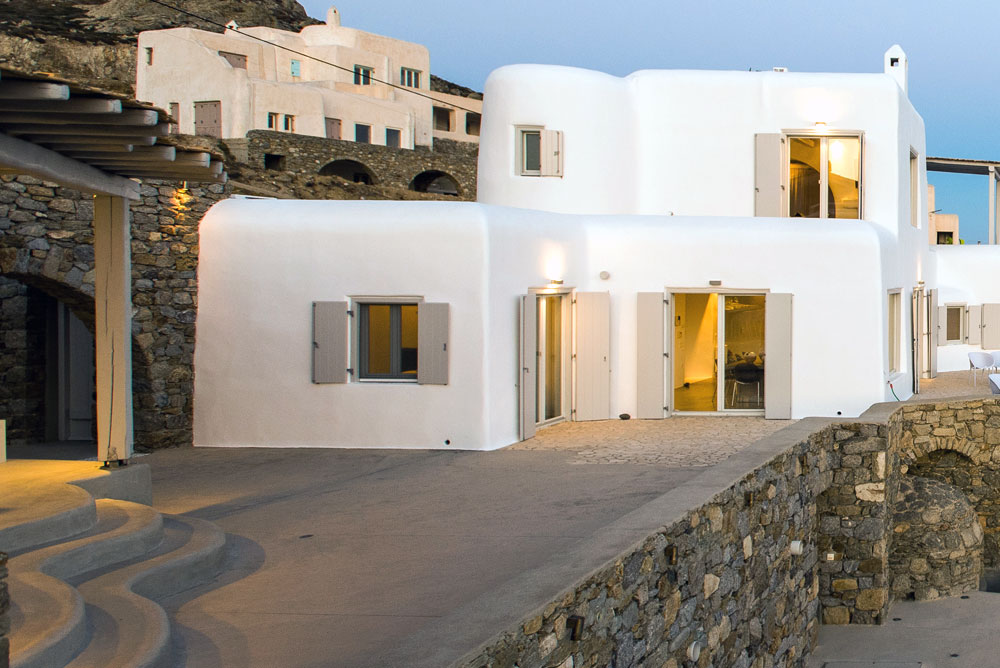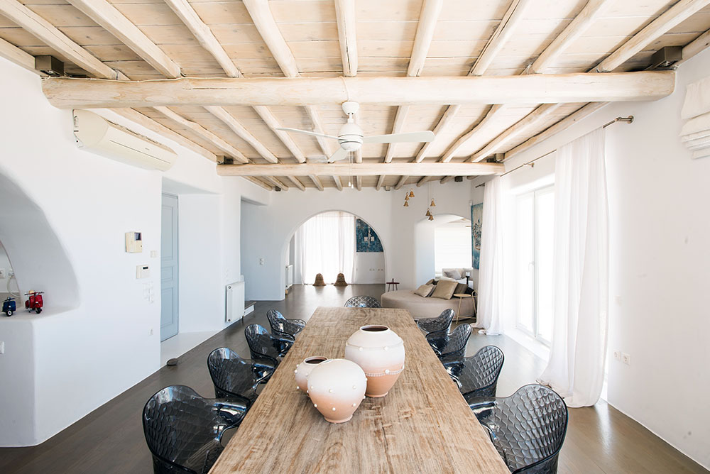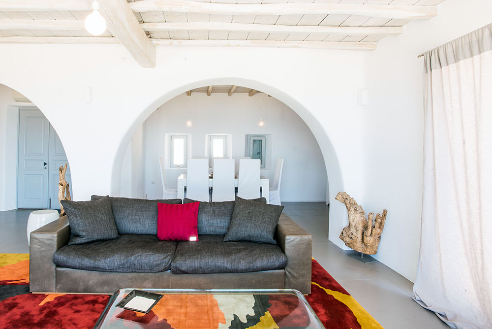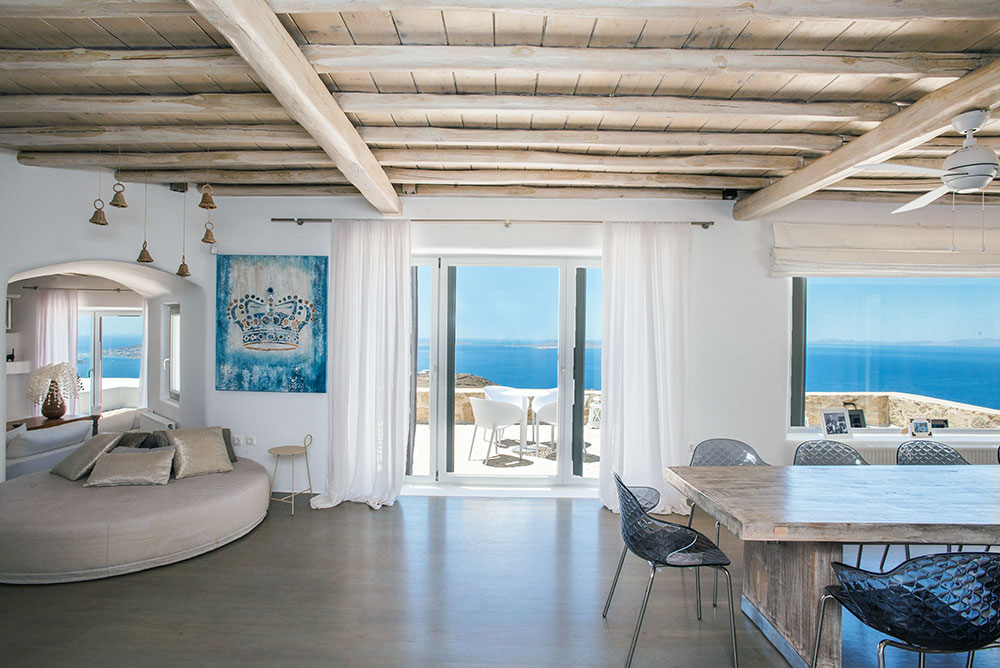 The architecture at Villa DeLucien has harmoniously combined the elegance and fine traditional aesthetics of modern interior with the wild beauty of the Cycladic nature found right outside.